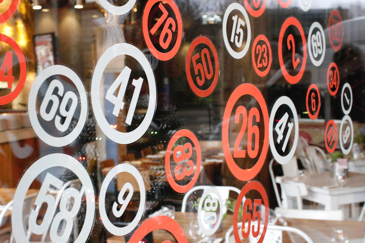 The theme of Rossopomodoro’s Christmas campaign is La Tombola – the traditional Neapolitan festive gambling game – basically Bingo with knobs on. That’s why we decorated the restaurant windows with a blizzard of random numbers rather than the ubiquitous yawn-worthy flurry of vinyl snowflakes.